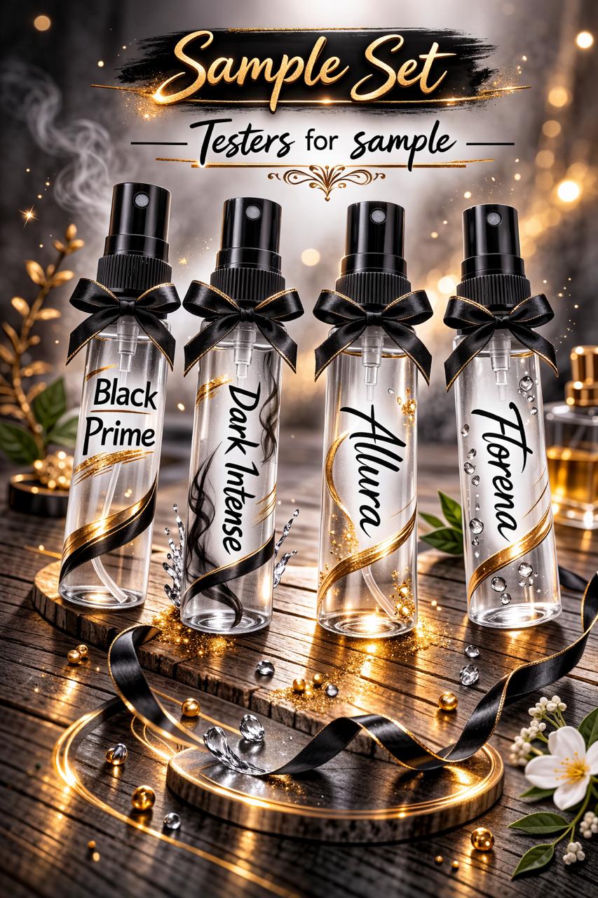 Luxury Perfume Sample Set – 4 Testers (Black Prime, Dark Intense, Allura, Florena)